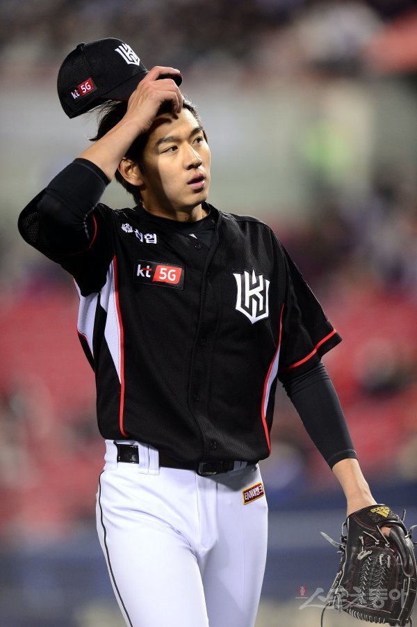 선발 투수로 등판한 kt 이대은이 4회말 투구를 마치고 더그아웃으로 들어가고 있다.