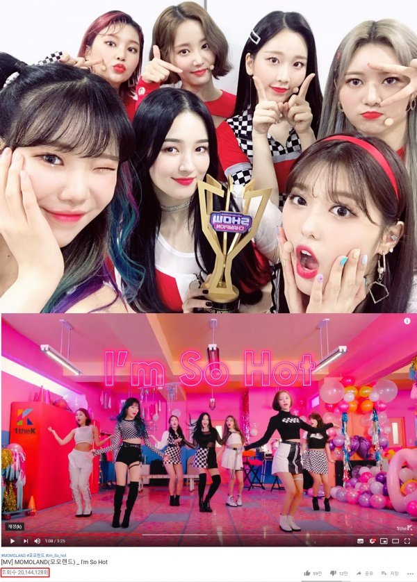 그룹 모모랜드가 신곡 \'암쏘핫(I\'m So Hot)\'으로 음악 방송 3관왕에 오름과 동시에 뮤직비디오 조회수 2천만 뷰를 돌파했다.