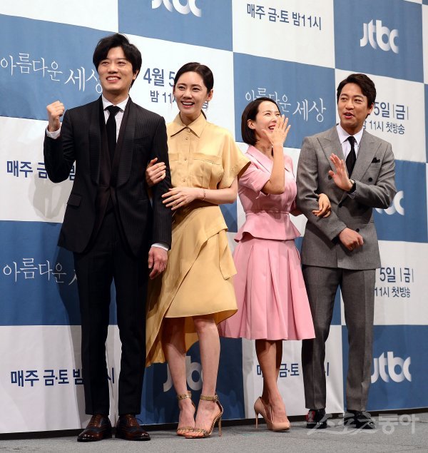 4일 서울 강남구 논현동 임피리얼팰리스에서 열린 JTBC 새 금토드라마 ‘아름다운 세상’ 제작발표회에서 박희순, 추자현, 조여정, 오만석이 포토타임을 갖고 있다.