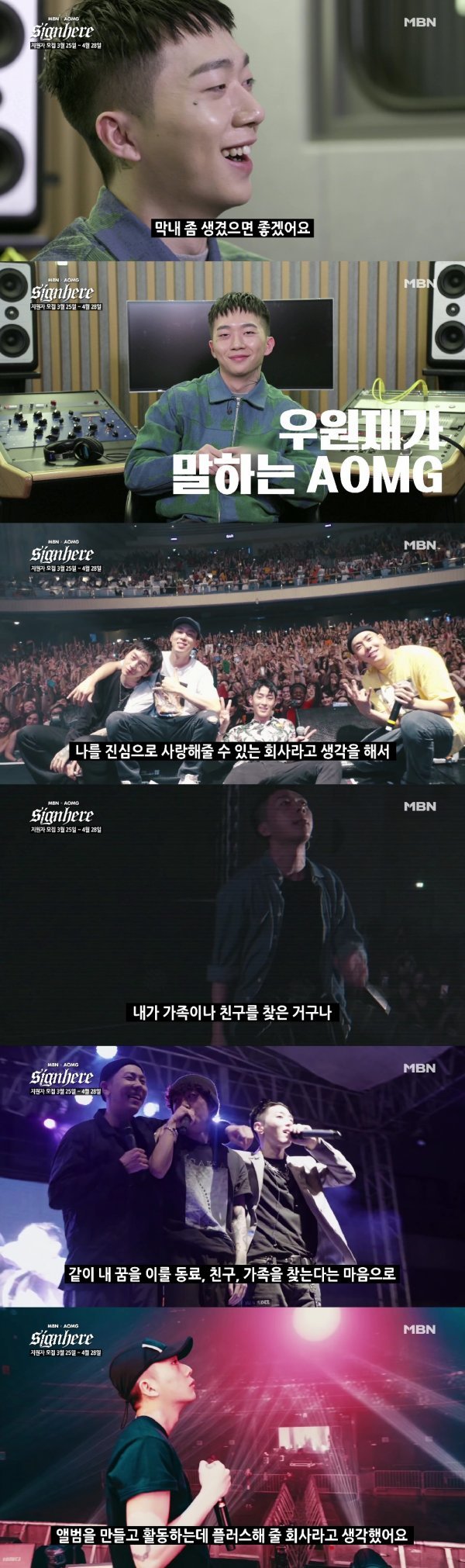 우원재는 "AOMG에 들어온 걸 절대 후회 안 하는 게, 나를 진심으로 사랑해줄 수 있는 회사라고 생각하기 때문이다. 내 가족‧친구를 찾은 것 같다. 그게 제일 큰 이유다. 그리고 앨범을 만들고 활동하는데 더 플러스해 줄 회사라고 생각했다"고 말했다. 이어 "제일 중요한 것은 분위기"라면서 "회사를 찾는 비즈니스 적인 프로그램이 아니라, 같이 \'내 꿈\'을 이룰 동료와 친구, 가족을 찾는다는 마음으로 지원하길 바란다”고 전했다. 더불어 "막내 좀 생겼으면 좋겠다"는 간절한 소원과 함께 이제껏 본 적 없는 환한 미소를 지어 주변을 깜짝 놀래켰다.