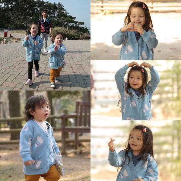 공개된 사진 속 나은이와 건후는 하늘색 카디건을 맞춰 입고 봄 분위기를 풍긴다. 호기심 가득한 건후의 눈빛이 무엇을 본 건지 궁금증을 자아낸다. 이에 더해 나은이의 사랑스러운 하트 3종 세트는 심쿵을 유발한다.