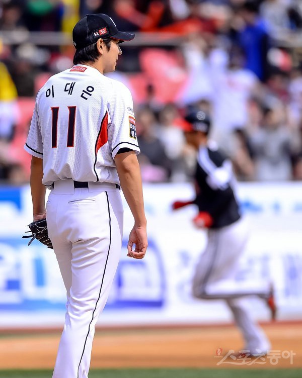 7일 경기도 수원 kt위즈파크에서 ‘2019 신한은행 MY CAR KBO리그’ LG트윈스와 kt위즈의 경기가 열렸다. kt 선발 이대은이 3회초 1사 LG 오지환에게 솔로홈런을 허용한 후 아쉬워하고 있다.