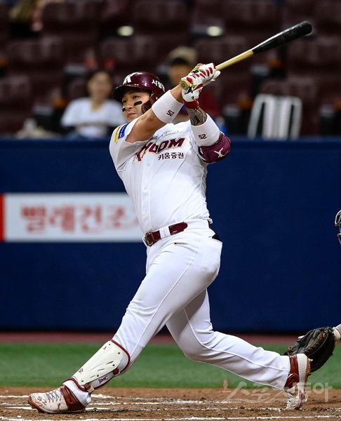 10일 서울 고척스카이돔에서 ‘2019 신한은행 MY CAR KBO리그’ KT 위즈와 키움 히어로즈의 경기가 열렸다. 키움 박병호가 4회말 선두타자로 나와 솔로홈런을 치고 있다. 고척|김진환 기자 kwangshin00@donga.com