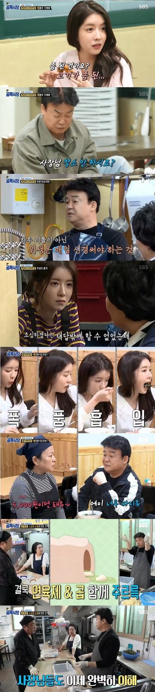 한편, 이날 방송 ‘최고의 1분’은 ‘청소전문가’ 정인선의 맹활약이었다. 백종원은 사장님에게 “식당 선배로서 말씀드리는 건데 식당일은 절대 눈 가리고 아웅이 안 된다”며 함께 주방 대청소에 돌입했지만, 일손이 부족했고 정인선에게 SOS 요청을 했다. 정인선은 옷까지 갈아입으며 꼼꼼히 청소했고 사장님마저 부끄럽게 만들었다. 이 장면은 9.7%까지 오르며 ‘최고의 1분’을 기록했다.