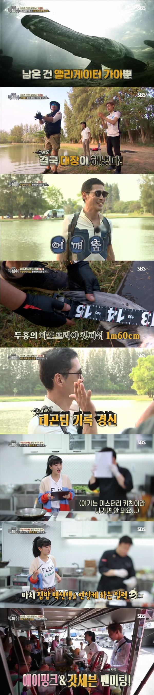 이날 ‘빅피쉬 드림팀’은 전설의 괴어인 ‘엘리게이터 가아’를 목표로 이태곤, 보미, 정두홍이, 민물의 제왕 ‘피라루쿠’를 잡기 위해 지상렬, 진우가 두 팀으로 나눠 빅피쉬 사냥에 나섰다. 특히, 이태곤 팀에는 태국 황태자 갓세븐(GOT7) 뱀뱀이 “오늘 아르바이트하러 왔다”며, 현지 전문가 통역을 위해 지원 사격을 펼쳐 눈길을 끌었다.