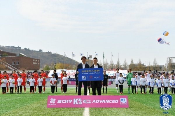 K3리그와 ‘비프로컴퍼니’는 13일(토) 김포종합운동장에서 개최된 김포시민축구단과 화성FC의 ‘2019 K3리그 ADVANCED 중계경기’에서 업무협약을 체결했다. ‘비프로컴퍼니’는 독일 함부르크에 본사를 두고 있는 경기 영상 분석업체로, 다수의 K리그 팀과 독일 분데스리가 클럽 및 유럽 국가대표팀과도 협력 관계에 있다.