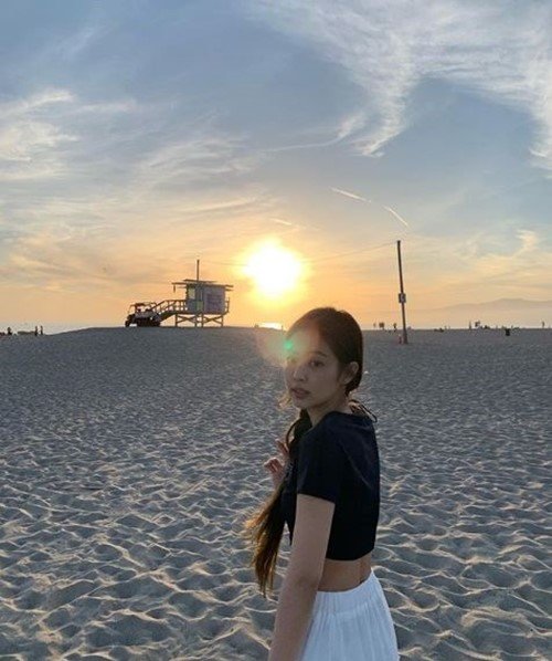 걸그룹 블랙핑크의 제니가 화보 같은 일상을 공개했다. 공연을 위해 미국에 체류 중인 제니가 바닷가에서 잠깐의 휴식을 즐기고 있다. 끝없는 모래사장 위에 서 있는 그의 얼굴은 배경이 된 노을과 겹쳐 마치 후광이 비치는 듯한 착각을 일으킨다. 허리 라인이 고스란히 드러나는 크롭티로 멋을 낸 패션도 눈길을 사로잡는다. 팬들은 “평화로워 보여 좋다” “그림 같은 미모” 등 반응을 보냈다.