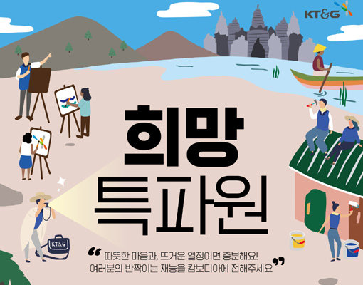 KT&G(사장 백복인)가 전국 대학생을 대상으로 캄보디아 현지 봉사활동을 펼칠 ‘KT&G 캄보디아 희망특파원’ 8기를 28일까지 모집한다.