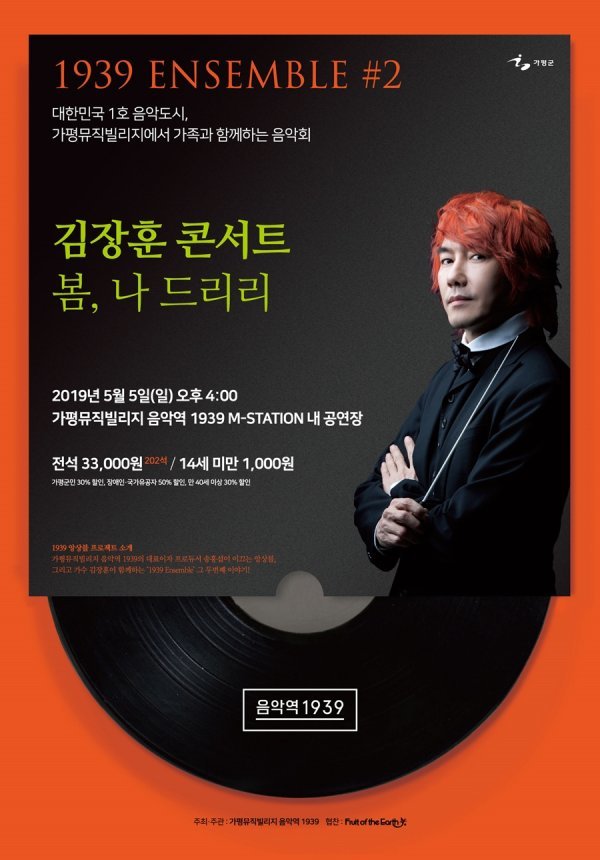가평뮤직빌리지 \'음악역 1939\'가 \'1939 Ensemble 김장훈 콘서트-봄, 나 드리리\'를 개최한다.