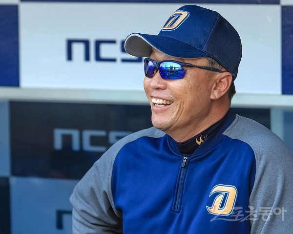 NC 이동욱 감독이 경기 전 환하게 웃으며 취재진과 인터뷰를 하고 있다.