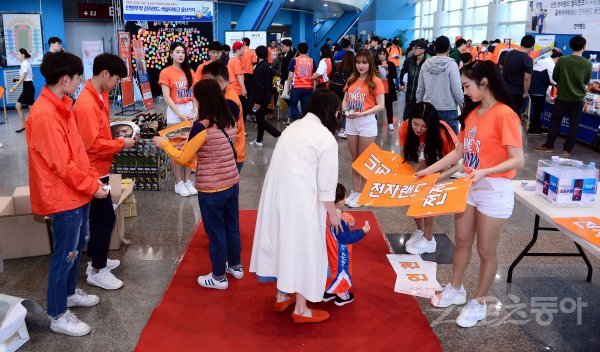 17일 인천 삼산월드체육관에서 열린 ‘2018-2019 SKT 5GX 프로농구’ 인천 전자랜드와 울산 모비스의 챔피언결정전 3차전에서 농구팬들이 입장하고 있다.