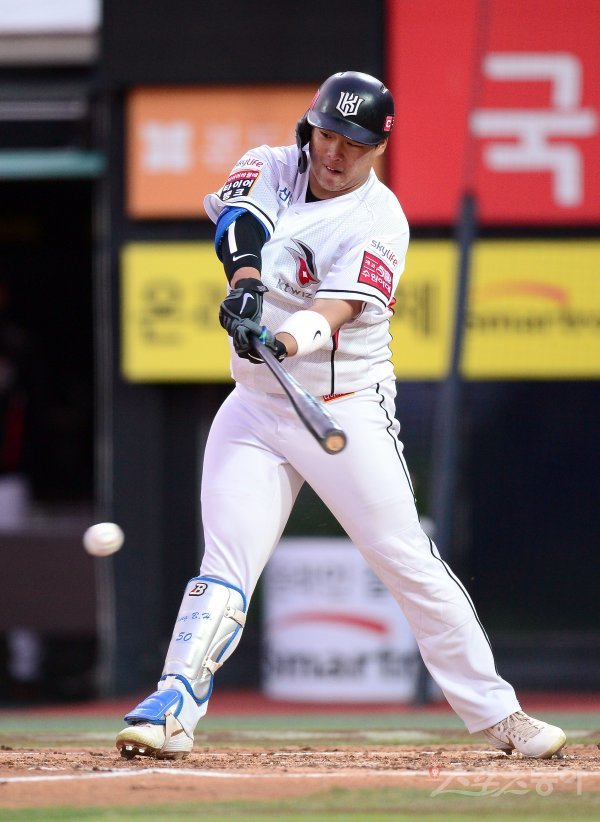 1회말 1사 1루 kt 강백호가 좌전 안타를 치고 있다.
