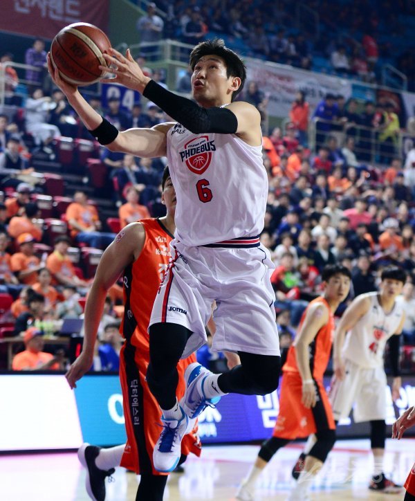 17일 인천 삼산월드체육관에서 열린 ‘2018-2019 SKT 5GX 프로농구’ 인천 전자랜드와 울산 모비스의 챔피언결정전 3차전에서 모비스 양동근이 전자랜드 수비를 피해 슛을 쏘고 있다.