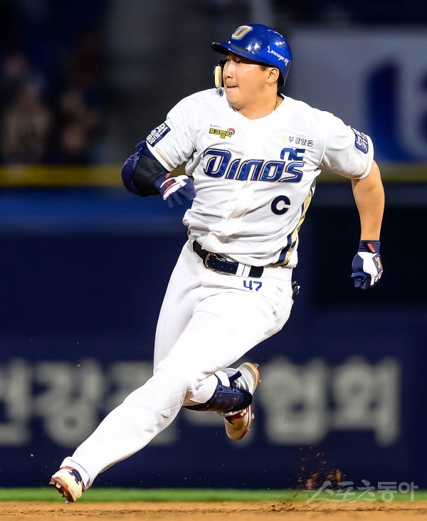NC 나성범이 5회말 2사 상황에서 안타를 친 후 2루 베이스를 밟고 3루까지 향하고 있다.