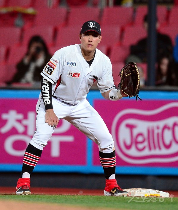 8회초 kt 황재균이 1루 수비를 보고 있다.