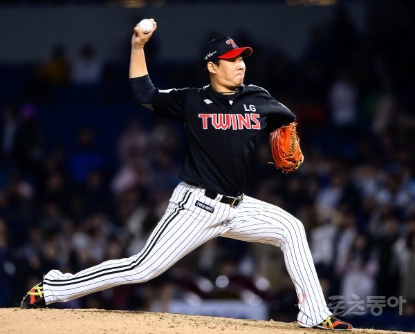 LG 정찬헌이 연장 10회말 등판해 힘차게 공을 던지고 있다.