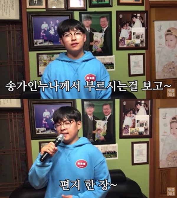 공개된 영상 속 한태웅은 “얼마 전 ‘미스트롯’에서 송가인 누나가 ‘한 많은 대동강’을 부른 것을 감명 깊게 보고 팬이 됐다”며 영상을 찍게 된 계기와 함께 ‘미스트롯’에 출연 중인 송가인을 향한 진심 어린 팬심을 전했다.