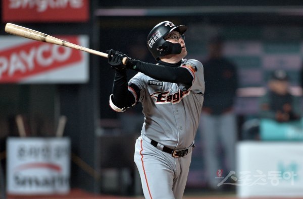 6회초 1사에서 한화 이성열이 우월 솔로 홈런을 날리고 있다.