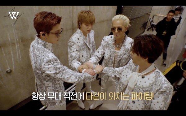 이어진 영상 말미 대기 중이던 위너는 또 한번 상황극에 빠졌다. 카메라맨으로 변해 지금 뭐하냐고 묻는 민호에게 승훈은 “어떻게 하면 최고의 무대를 보여드릴 수 있을까 회의하는 중”이라며 “최상의 무대를 선사하기 위해 항상 체크를 빼먹지 않고 한다”고 답했다.