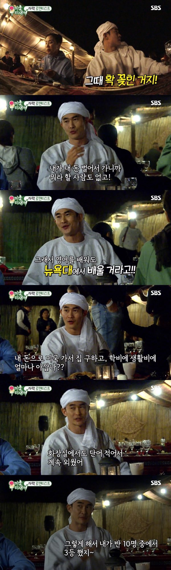 이날 배정남은 누나들과 함께 사막에 있는 뷔페 레스토랑을 찾았다. 이런 가운데 그는 의류매장을 운영하던 와중에 뉴욕 유학을 결정하게 된 사실을 알렸다.