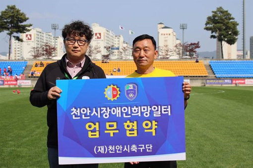 이번 협약으로 천안시청은 천안시장애인희망일터의 장애인들이 직접 판매하는 호두 육포를 홈경기가 열리는 천안축구센터에서 판매할 수 있도록 지원한다. 또 선수단이 희망일터를 방문해 장애인들의 근로활동 및 작업훈련을 돕는다.