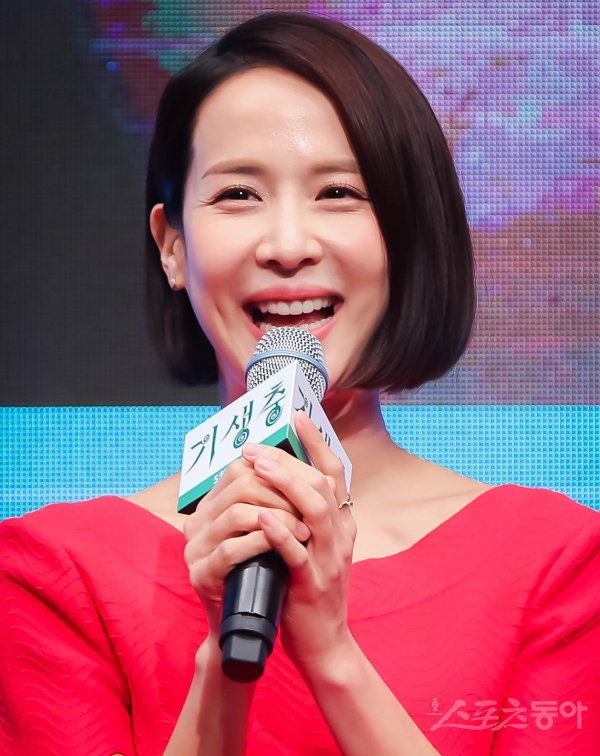 배우 조여정이 22일 서울 중구 소공동 웨스틴 조선호텔 서울 그랜드볼룸에서 열린 영화 ‘기생충’ 제작보고회에서 인사말을 하고 있다.