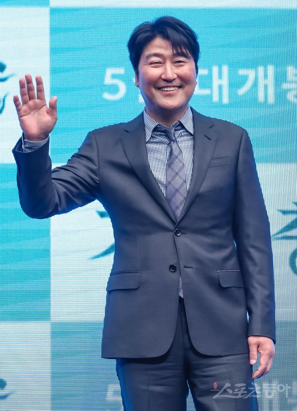 배우 송강호가 22일 서울 중구 소공동 웨스틴 조선호텔 서울 그랜드볼룸에서 열린 영화 ‘기생충’ 제작보고회에서 포즈를 취하고 있다.
