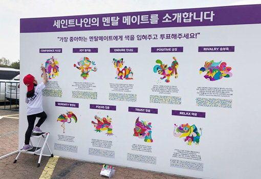 세인트나인 브랜드의 상징인 멘탈메이트 캐릭터에 힘을 실은 올해 대회에 걸맞게 브랜드 홍보를 위한 다양한 마케팅도 눈에 띄었다. 먼저 갤러리들을 목표로 한 컬러 마케팅이다. 갤러리 플라자에는 9가지 멘탈메이트 캐릭터의 컬러링 보드가 준비됐다. 갤러리들은 선호하는 멘탈메이트에 투표를 하고 원하는 색으로 보드를 칠하며 즐거운 시간을 보낼 수 있었다.