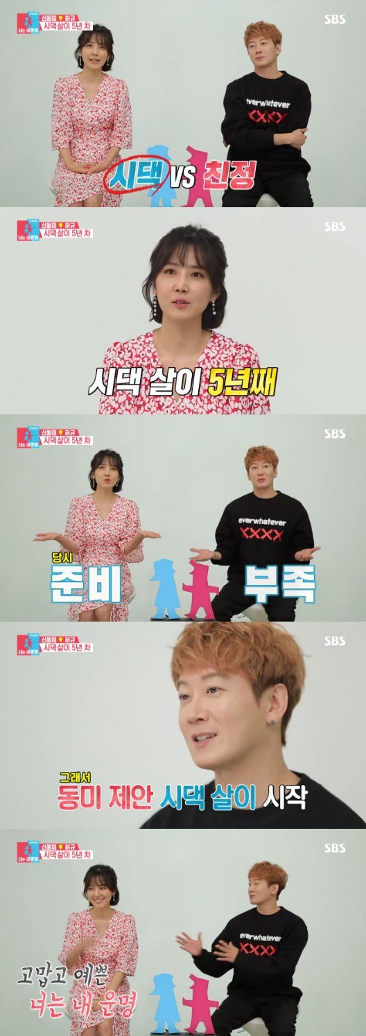 이날 방송에서 외출을 마치고 집으로 온 신동미는 먼저 시부모에게 인사를 했다. 신동미, 허규 부부는 “사귄다고 양가 부모께 인사를 드리고 나서 8개월만에 결혼을 했다. 그러다 보니 집을 준비할 여력이 없었다”라고 말했다.