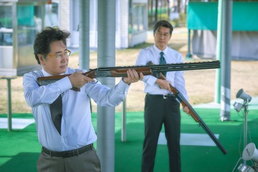 공개된 사진 속에는 대호와 강행장이 셔츠 안으로 넥타이를 넣은 채 상남자 매력을 뽐내며 사격에 집중하고 있는 모습이 담겨 있다. 대호가 눈빛부터 남다른 전직 사격 선수 포스를 자랑하며 '아재파탈' 매력을 발산하는 가운데 강행장 역시 대호 못지않은 카리스마와 흐트러짐 없는 자세로 '멋짐'을 폭발시켜 시선을 강탈한다.