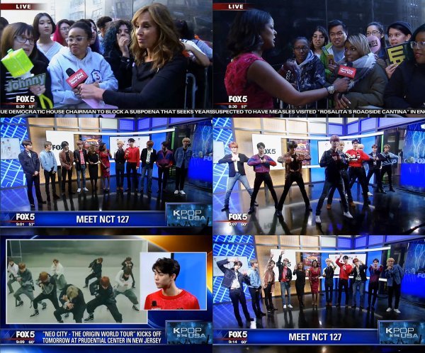 NCT 127은 지난 23일 오전 9시(현지시간) 미국 FOX5의 유명 토크쇼 ‘굿데이 뉴욕(Good Day New York)’ 생방송에 출연해, 5월 24일 발표 예정인 새 앨범 소개, 첫 북미 투어를 펼치는 소감 등 다양한 이야기를 들려줘 현지 시청자들의 시선을 사로잡았다.