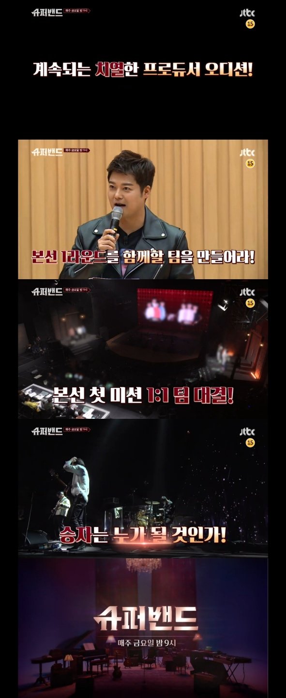 26일 방송될 ‘슈퍼밴드’ 3회에서는 참가자(참가 밴드)별로 각자 무대를 선보였던 예선과 달리, 예선을 통과한 참가자들끼리 결성한 새로운 밴드끼리의 본격적인 ‘사운드 대결’이 시작된다.