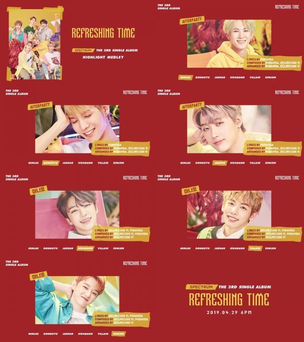 앞서 단체 이미지 티저와 솔로 콘셉트 포토를 오픈하며, 컴백에 대한 기대를 한껏 높인 스펙트럼. 새 앨범 \'Refreshing Time\'에서는 비주얼은 물론 음악적으로도 한층 성숙해진 스펙트럼을 만나 볼 수 있을 예정이다.