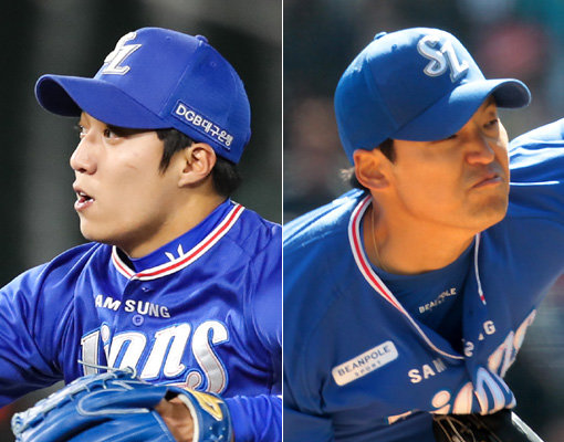 삼성 원태인(왼쪽)-백정현. 사진제공|스포츠코리아