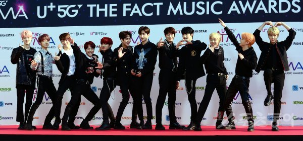 24일 인천 남동체육관에서 열린 ‘더팩트 뮤직 어워드(THE FACT MUSIC AWARDS)’에 참석한 더보이즈가 카메라를 향해 포즈를 취하고 있다.