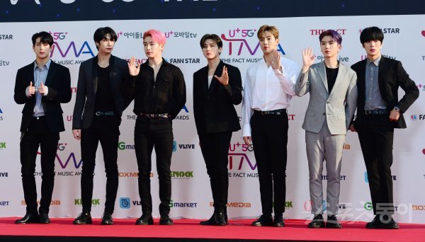 24일 인천 남동체육관에서 열린 ‘더팩트 뮤직 어워드(THE FACT MUSIC AWARDS)’에 참석한 몬스타엑스가 카메라를 향해 포즈를 취하고 있다.
