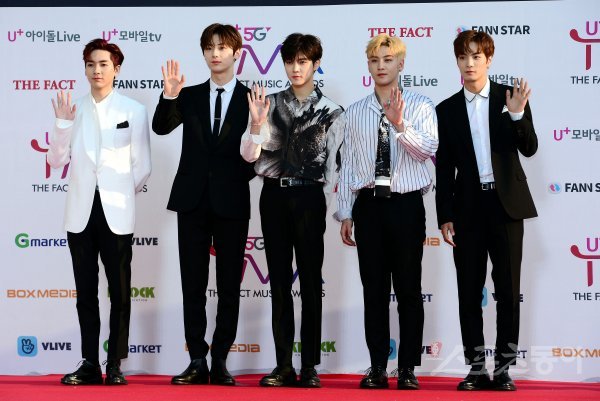 24일 인천 남동체육관에서 열린 ‘더팩트 뮤직 어워드(THE FACT MUSIC AWARDS)’에 참석한 뉴이스트가 카메라를 향해 포즈를 취하고 있다.