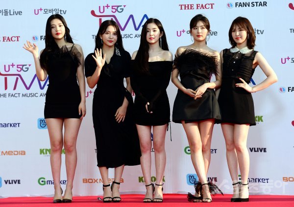 24일 인천 남동체육관에서 열린 ‘더팩트 뮤직 어워드(THE FACT MUSIC AWARDS)’에 참석한 레드벨벳이 카메라를 향해 포즈를 취하고 있다.