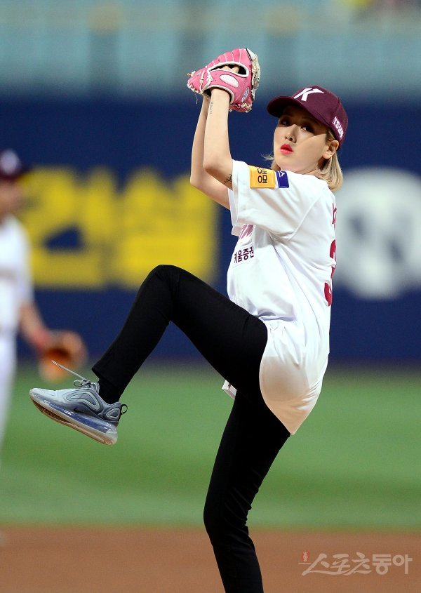 경기 전 래퍼 키썸이 시구를 하고 있다.