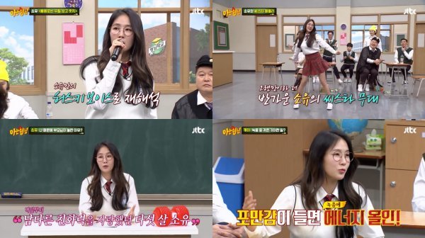 27일 방송된 JTBC ‘아는 형님’에서는 소유가 가수 김완선, 바다, 러블리즈 케이와 함께 전학생으로 출연, 파워풀한 가창력과 댄스부터 유쾌한 예능감까지 다채로운 매력을 가득 뽐내며 시청자들의 마음을 사로잡았다.