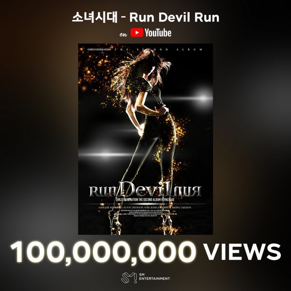 지난 2010년 3월 유튜브 SMTOWN 채널을 통해 공개된 소녀시대 ‘Run Devil Run’ 뮤직비디오는 금일(29일) 유튜브 조회수 1억뷰를 돌파해 소녀시대의 글로벌한 인기를 재입증했다.