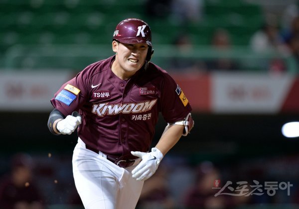 6회초 2사 2, 3루에서 키움 장영석이 2타점 2루타를 날린 뒤 환호하고 있다.