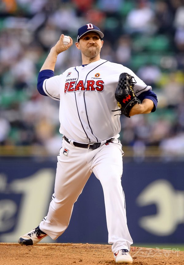 두산 선발 린드블럼이 등판해 힘차게 공을 던지고 있다.