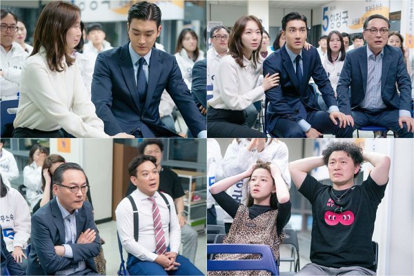 예측 불가능한 선거의 끝에서 여의도로 향할 사람은 누구일지 시청자들의 궁금증이 증폭되는 가운데, 오늘(7일) 공개된 스틸컷에는 선거 결과를 기다리는 정국과 당원들의 모습이 포착됐다. 불안해 보이는 정국의 손을 잡아준 든든한 아내 미영(이유영)과 진지한 표정으로 개표방송을 보는 듯한 김주명, 그리고 좌충우돌 선거 운동으로 폭소를 선사했던 동료들까지. 이들이 오늘(7일) 밤 기쁨의 축배를 들 수 있을지 귀추가 주목된다.