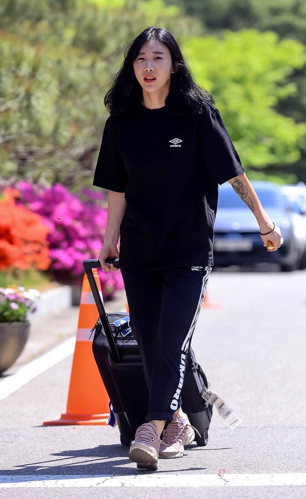 ‘2019 FIFA 프랑스 여자월드컵’을 앞둔 대한민국 여자축구대표팀이 7일 경기도 파주 국가대표트레이닝센터(NFC)에서 마지막 국내 훈련을 앞두고 박세라가 대표팀 소집을 위해 입소하고 있다.