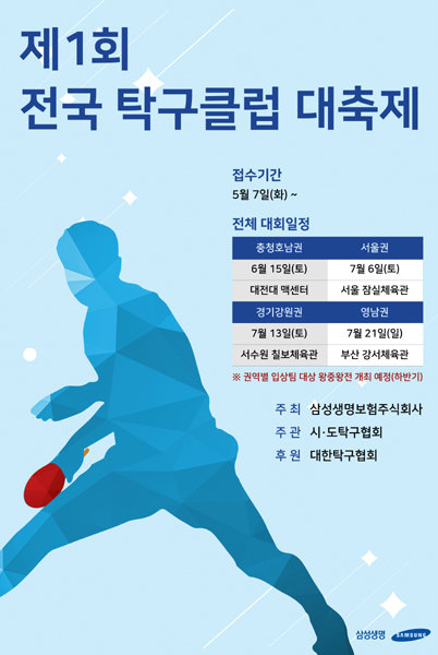 삼성생명이 탁구의 저변확대와 생활체육 활성화를 위해 ‘제1회 전국 탁구클럽 대축제’를 실시한다.