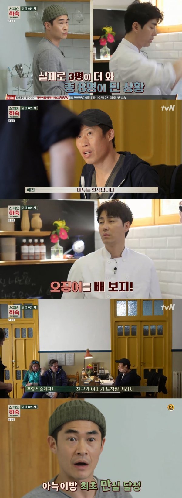 10일 오후 방송된 tvN 예능프로그램 ‘스페인 하숙’에서는 영업 8일 차에 손님을 최대로 받게 된 멤버들의 모습이 그려졌다.