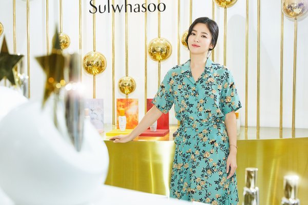 배우 송혜교가 15일 오후 ‘서울 강남구 강남대로 한 빌딩에서 열린 ‘설화수 유니버스’ 팝업스토어 오픈 행사에 참석해 포즈를 취하고 있다.