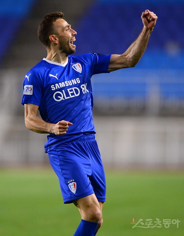 후반 수원삼성 사리치기 추가골을 넣은 후 환호하고 있다.