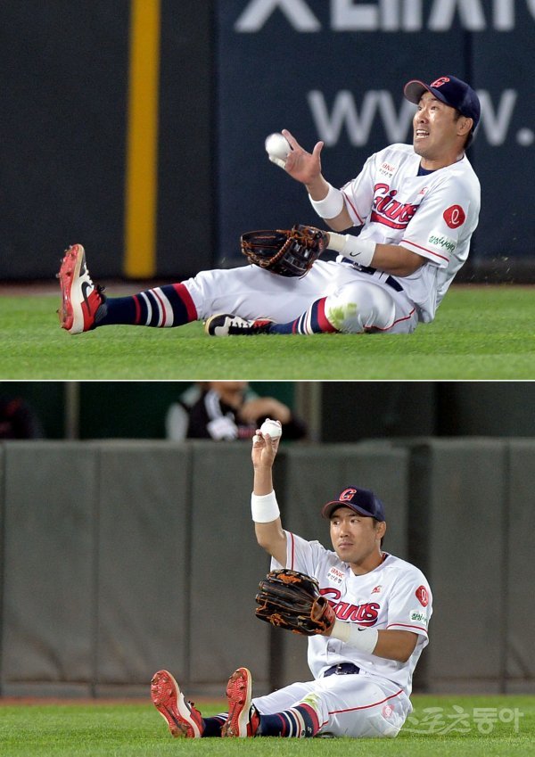 4회초 무사에서 LG 이천웅의 타구를 롯데 전준우가 호수비로 잡아내고 있다.